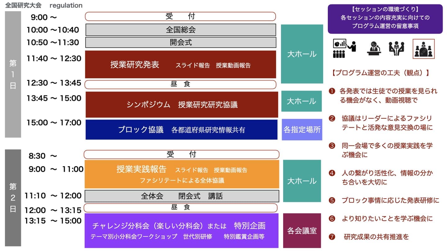 全国研究大会プログラムの基本枠は、原則以下の図のように計画します。